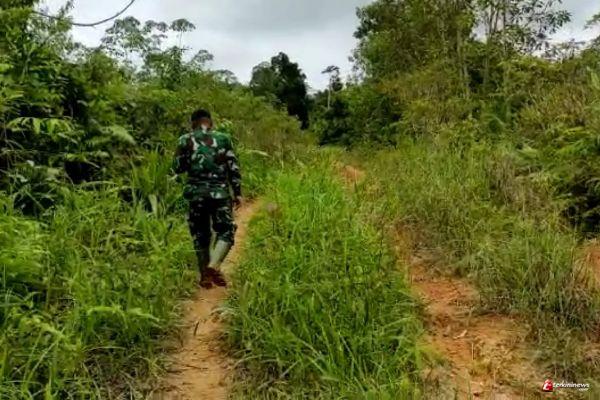SINTANG - Anggota satgas TMMD 109 Kodim 1205/Sintang meninjau langsung lokasi pembangunan jalan dengan berjalan kaki pada Selasa (29/09/2020).