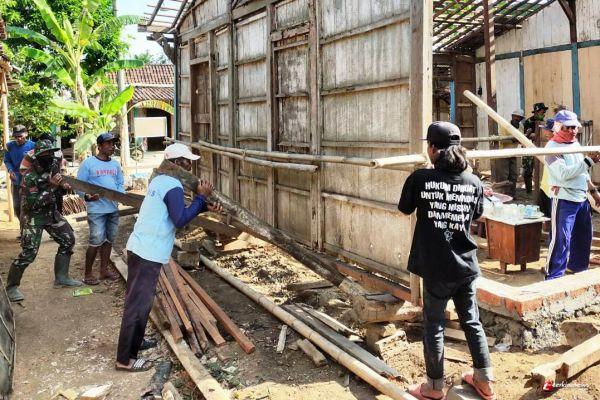 ‘’Meskipun kondisi cuaca yang sangat panas, namun Satgas TMMD dengan dibantu masyarakat tetap semangat merehab rumah Rusnin," ujar Danramil 03/Cepiring, Kapten Cpl Esti.
