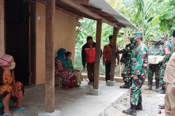 Kegiatan pembagian sembako itu dilakukan setelah rombongan mengecek pelaksanaan pengecoran jalan dan pembangunan Rehab Rumah Tidak Layak Huni ( RTLH ) 10 unit yang menjadi sasaran TMMD.