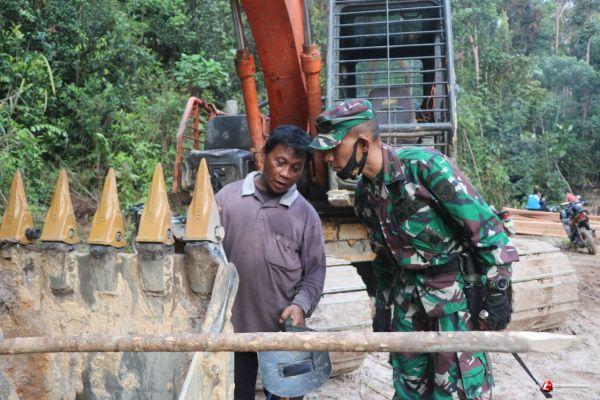 SINTANG - Dansatgas TMMD 109/Sintang, Letkol Inf Eko Bintara Saktiawan turun langsung untuk mengecek perbaikan alat berat, Rabu (07/10/2020).