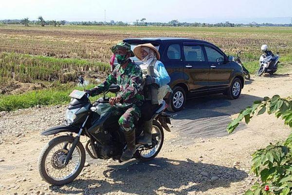 Ngaiman (54) warga dusun kacangan lor, yg kebetulan sedang berboncengan dengan pelda Supriyadi Danpos Kangkung, dengan spontan Mengatakan, "Matur nuwun Danpos luar biasa semangatnya. (Pendim 0715/Kendal)Anto.