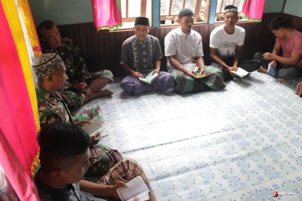 SINTANG - Anggota Satgas TMMD Reguler 109 Kodim 1205/Sintang Prada Frangky setelah Sholat jum'at diundang Yasinan di rumah ketua RT Zulkifli di Desa Tirta Karya Kecamatan Ketungau Tengah Kabupaten Sintang , pada Jumat (2/10/2020).