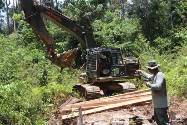 Dengan di bantu 1 alat berat Excavator, anggota Satgas TMMD 109/Sintang mulai mengangkut peralatan kerjanya dari jembatan 1 menuju ke jembatan 2.
