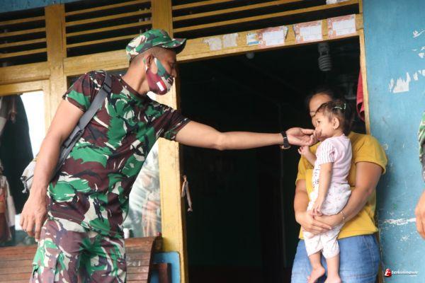Guna meningkatkan sinergitas TNI & Rakyat, Kopda Riyan selaku anggota dari satgas TMMD 109 menyempatkan diri untuk bersilaturahmi dengan mengunjungi rumah rumah diseberang Desa Tirta Karya.