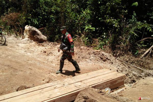SINTANG - Serda Irwanto telah memeriksa pembuatan gorong-gorong di Desa Tirta Karya, Kecamatan Ketungau, Kabupaten Sintang, Kalimantan Barat, telah selesai 100 persen, Minggu (11/10/2020).