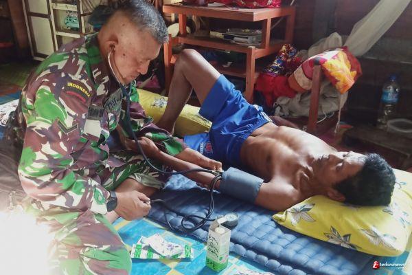 SINTANG - Serda Yudo selaku tim kesehatan membantu warga yang sedang sakit, Jumat (02/10/2020).