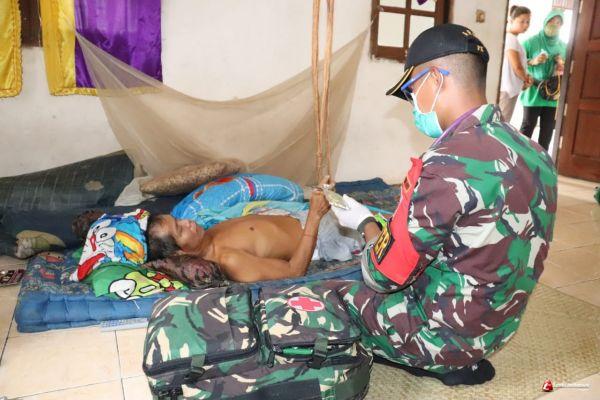 Dokter satgas Yonif 407/PK Letda Inf dr. bambang Irwansyah bersama Pasiter satgas Lettu Inf Masraniansyah mendatangi langsung rumah Bapak Impin Ak Lumong 50 tahun