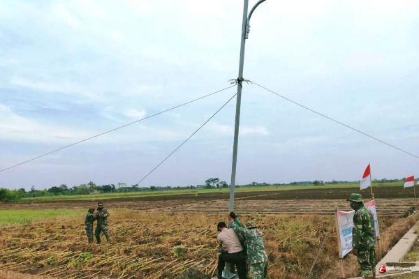 Seperti terlihat pada pelaksanaan kegiatan sasaran fisik pemasangan tiang lampu penerangan jalan dalam kegiatan TMMD Reguler Ke-109 Kodim 0715/Kendal, anggota satgas tmmd dan anggota kepolisian bersama sama mendirikan tiang Lampu Penerangan Jalan Umum (PJU) untuk mewujudkan Desa Sendang Kulon terang.