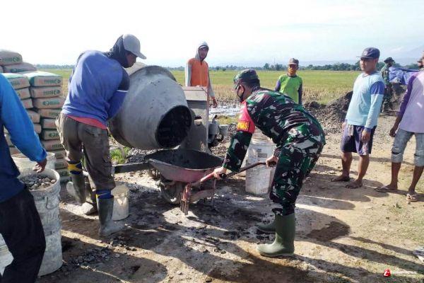 Dikemukakan Danpos Kangkung Pelda Supriyadi, gotong royong, kekompakan dan kebersamaan serta saling membutuhkan harus dicamkan dihati masyarakat jangan pernah berfikir bahwa hidup tak kan membutuhkan orang lain.