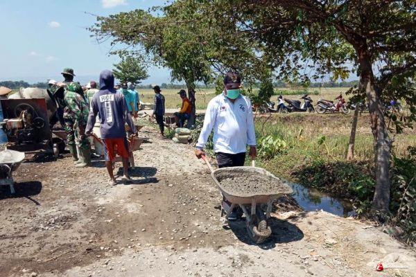 Selaku Perwira Pengawas di lapangan, Danramil Kapten Cpl Esti mengatakan, meski hari libur, personil TNI bersama masyarakat tetap bekerja seperti biasa untuk menuntaskan pengerjaan sasaran fisik seperti pembangunan jalan pengecoran.