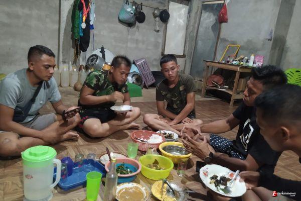 Ibu Helena juga menyambut teman-teman anaknya yang juga merupakan anggota Satgas TMMD 109 / Sintang. Mereka semua mendapat jamuan makan malam.