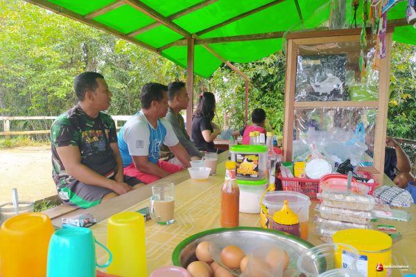 SINTANG - Sebelum mengawali kerja, para anggota satgas TMMD 109 Kodim 1205/Sintang sarapan diwarung Ibu Aisyah, Senin (12/10/2020).