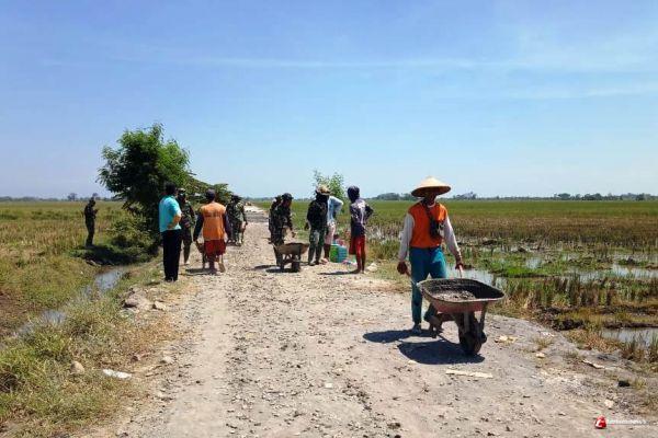 "Jatah giliran saya membantu pengecoran sudah kemarin, semua akan laksanakan dengan baik dan penuh semangat. Kebetulan tempat gembala itik saya juga di dekat lokasi pengecoran jalan. Lumayan, sambil ngawasi itik, saya bantu bapak-bapak tentara ngecor jalan dengan dorong angkong ini," tutur Kang Jumar.