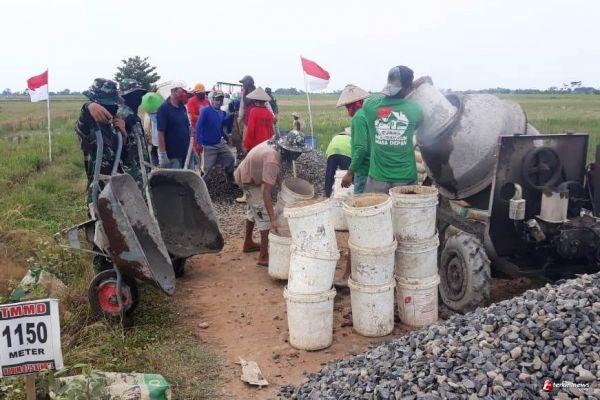 Kejar target di pembangunan jalan yang merupakan sasaran pokok , sejumlah TNI anggota Satgas dan warga tambah semangat di pelaksanaan Program TMMD REG ke-109 Kodim 0715/Kendal, yang berlokasi di Desa Sendang Kulon Kecamatan Kangkung, Kabupaten Kendal, dalam pengerjaan sasaran fisik salah satunya pengecoran jalan rabat beton.