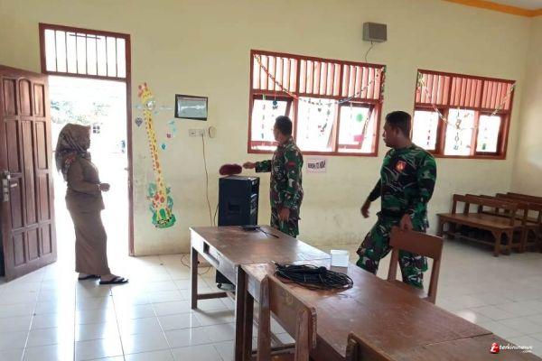 Manfaatkan Waktu Luang, Satgas TMMD Bantu Bersihkan Ruang Kelas