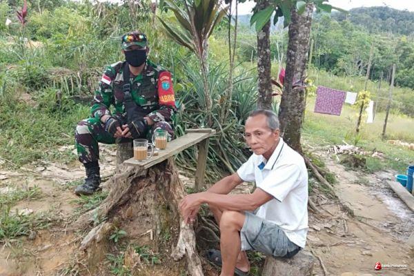 SINTANG - Sebelum memulai bekerja, anggota satgas TMMD 109 Kodim 1205/Sintang menyantap minuman coklat susu hangat bersama warga, Senin (12/10/2020).