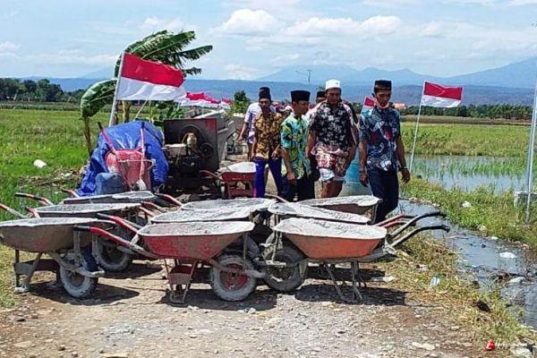 Mereka, beberapa warga itu dengan sabar dan penuh kehatian melewati lokasi betonisasi jalan yang belum dalam proses pengerjaan serta melewati tepian betonisasi jalan.