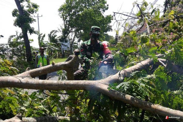 Evakuasi Pohon Tumbang, Babinsa Karangreja Himbau Pihak Terkait Pangkas Pohon di Sepanjang Jalan
