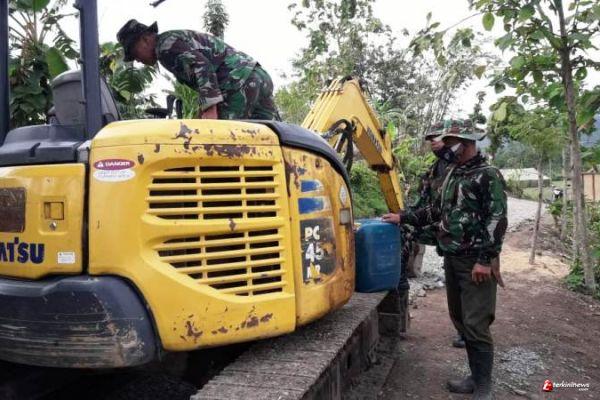 Excavator Kodim Brebes Terus Dipaksa Kerja Keras Untuk Pemadatan Jalan TMMD