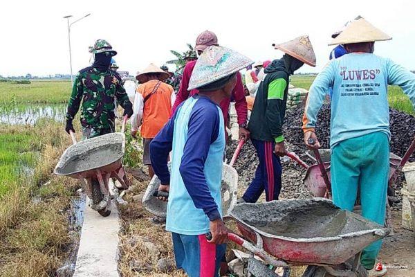 KENDAL- terkininews.com Sengatan matahari siang yang sangat panas, ditambah suara yang keluar dari mesin molen menambah suasana menjadi bising di lokasi betonisasi jalan.