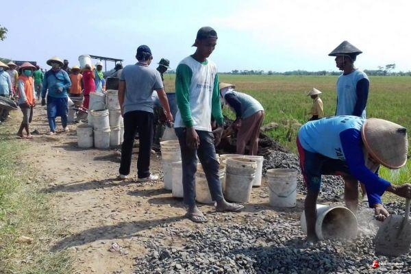 Warga Desa Sendang Kulon, terus bahu membahu bersama Satgas TMMD Reguler 109 pada pengerjaan fisik pengecoran jalan di Desa Sendang kulon, Kecamatan Kangkung, Kabupaten Kendal.