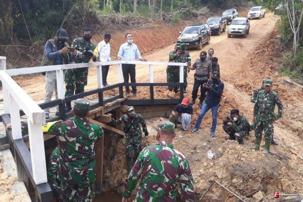 SINTANG - Dansatgas TMMD 109 Kodim 1205/Sintang bersama dengan Wasev dan rombongan kunjungi jembatan 1, Rabu (14/10/2020).