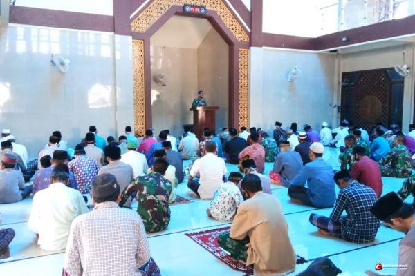 Seraya menutup khotbahnya, khotib juga mengajak untuk meningkatkan kebersamaan dengan bergotong royong bersama anggtoa TNI dalam membangun Desa.