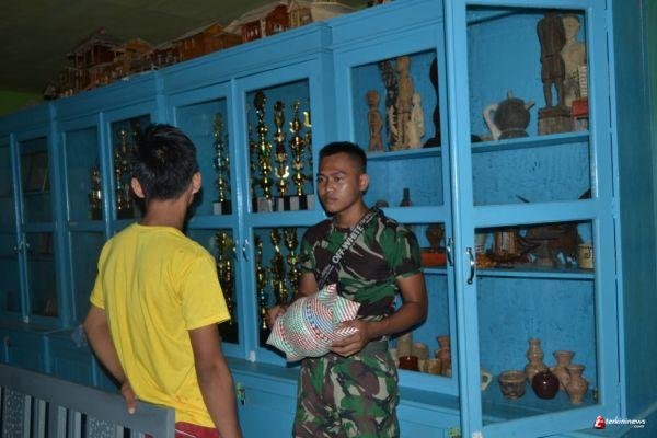 SINTANG - Karena jarak sekolah dan lokasi posko lumayan dekat, seorang anggota satgas TMMD 109 Kodim 1205/Sintang mengunjungi sekolah itu, Jumat (16/10/2020).