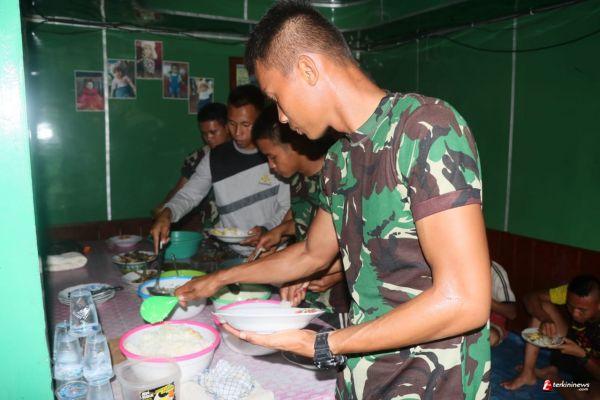 SINTANG - Anggota Satgas TMMD 109/Sintang di undang warga untuk makan bersama di rumahnya setelah membantu mendirikan tenda, jum'at(16/10/2020).