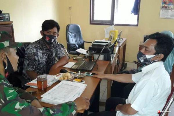 Tampak dirinya sedang mewawancarai kepala desa setempat, Wasid (44), untuk menambah keakuratan data dalam pembuatan berita.