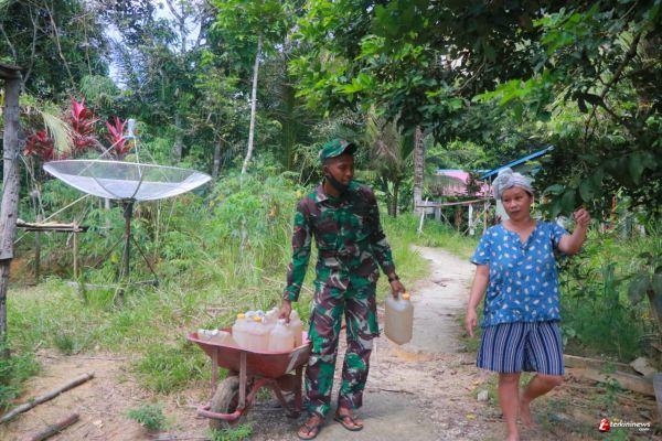 Melihat Warga Kesusahan, Kopda Riyan Antar Minyak Hingga Sampai Kerumahnya
