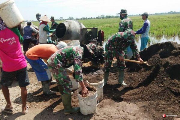 Antusias warga untuk cepat merasakan jalan penghubung akses Desa Sendang Kulon sangat tinggi, dibuktikan semangat bekerjasama dengan TNI dalam melaksanakan pengecoran jalan.