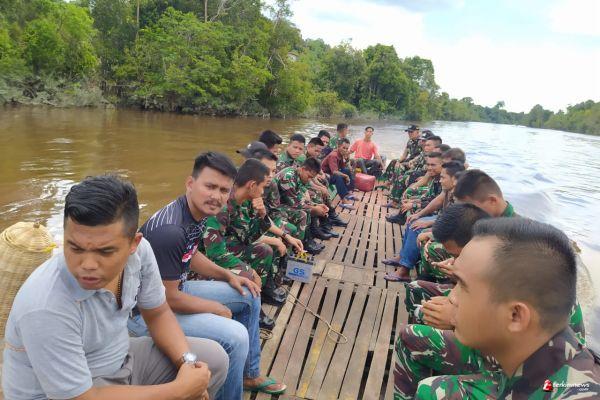 Dengan menggunakan sebuah perahu, beberapa anggota Satgas TMMD 109/Sintang berangkat menuju Dusun Sekapat untuk menghadiri pernikahan Bapak Pandi dan Ibu Sabrina.