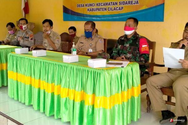 Cilacap - Antisipasi kecurangan dalam proses pemilihan perangkat desa di wilayahnya, Batuud Koramil 11/Sidareja Pelda Sugita, bersama Forkopincam memantau penelitian Berkas Tahap 1 persyaratan calon Perangkat Desa Kunci untuk formasi Kepala Dusun Cikondang, Kaur Keuangan dan Kasi Pelayanan yang digelar di Balai Desa Kunci Kecamatan Sidareja, Senin (19/10/2020).