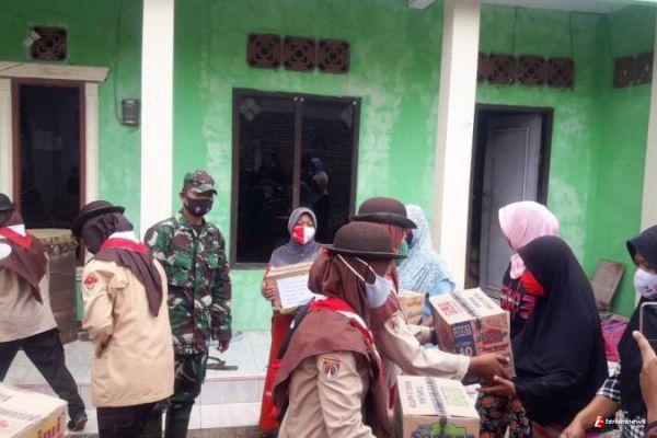 Brebes – Selain di Dusun Kedung Kandri RT/RW. 01, Desa Kalinusu, Kecamatan Bumiayu, Kabupaten Brebes, Jawa Tengah, Pramuka Saka Wira Kartika (SWK) binaan Koramil 11 Paguyangan Kodim 0713 Brebes, juga memberikan bantuan sosial berupa 8 dus mie instan di Dusun Karanganyar RT. 02 RW. 01, Kalinusu. Minggu (18/10/2020).