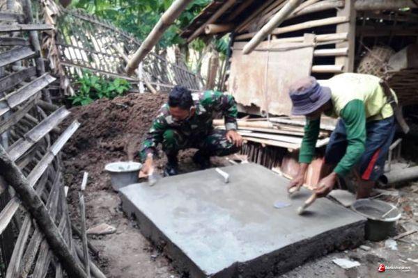 Brebes – Anggota TNI bersama tukang bangunan warga Desa Kalinusu, Kecamatan Bumiayu, Kabupaten Brebes, Jawa Tengah, tidak membutuhkan waktu lama untuk membuat septic tank di rumah Damad (33), warga Dusun Karanganyar RT. 02 RW. 01, Kalinusu, salah satu penerima rehab RTLH (Rumah Tidak Layak Huni) program TMMD Reguler 109 Kodim 0713 Brebes.