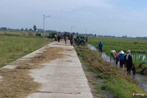 Seperti yang dilakukan Kopda Achmad Sudadi, salah satu anggota Satgas TMMD Reguler ke 109 Kodim 0715/Kendal dan sejumlah warga, melakukan pembereman jalan yang sudah di cor.
