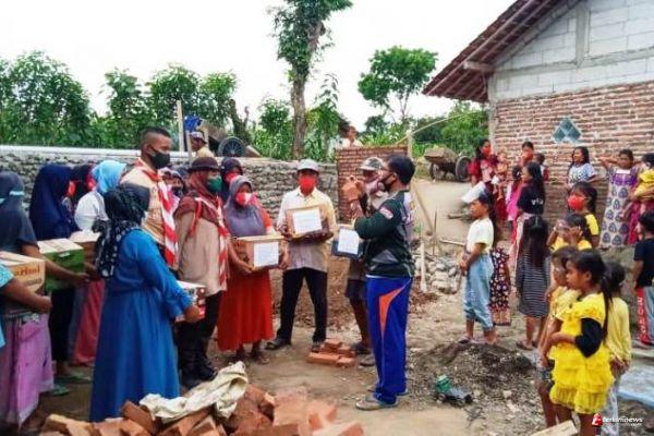 Tampak mereka memberikan bantuan tersebut di Dusun Kedung Kandri, Kalinusu. Minggu (18/10/2020).