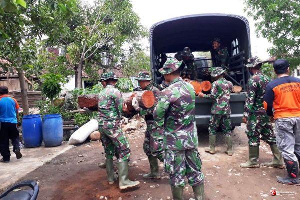 KENDAL- terkininews.com Anggota Satgas TMMD Reguler Ke-109 Kodim 0715/Kendal Serda Hariyadi membantu warga Desa Ngerjo Kecamatan Ringinarum,Kabupaten Kendal yang sedang angkat kayu yang akan dipergunakan untuk korban rumah kena angin puting beliung di wilayah tersebut .