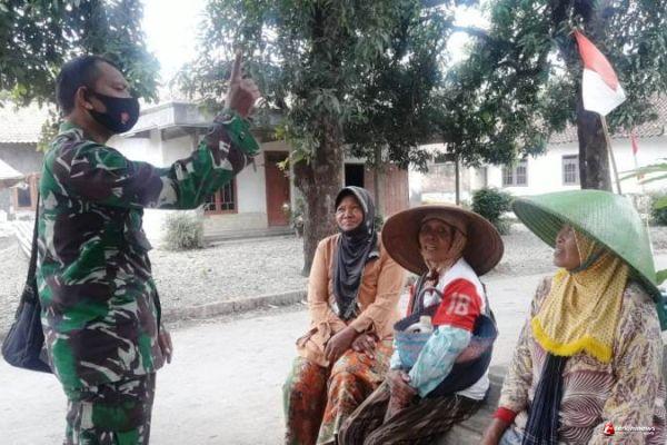 Brebes – Tak henti-hentinya Sertu Sugeng Widodo, Babinsa Koramil 11 Paguyangan, Kodim 0713 Brebes, selaku anggota jurnalistik TMMD Reguler 109 Brebes, mensosialisasikan tentang bahaya covid-19, kepada warga masyarakat Desa Kalinusu, Kecamatan Bumiayu, Kabupaten Brebes, Jawa Tengah.