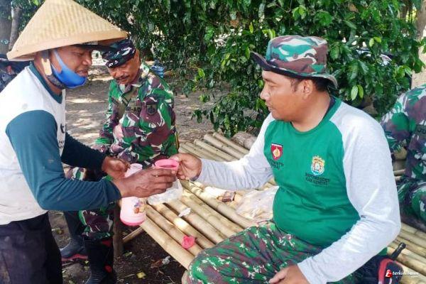 Suasana kekeluargaan dan cinta kasih nampak terlihat antara warga dan Satgas TMMD REG 109 TA 2020 Kodim 0715/Kendal di Desa Sendang kulon kecamatan kangkung.
