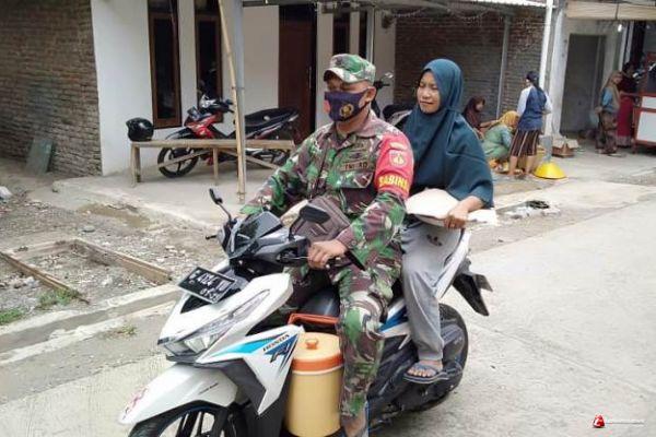 Seperti terlihat saat Sertu Joko Erwanto, Babinsa Koramil Bumiayu, anggota tim jurnalistik TMMD Reguler 109 Brebes, menolong Sumiyati (38), warga Dusun Karanganyar RT. 02 RW. 01, Kalinusu, untuk mengantarkan makanan dan minuman kepada anggota Satgas TMMD dan warga yang masih bekerja di finishing jalan antar dusun (Karanganyar-Kedung Kandri), yaitu pengerasan jalan 2,2 kilometer lebar 4-6 meter.