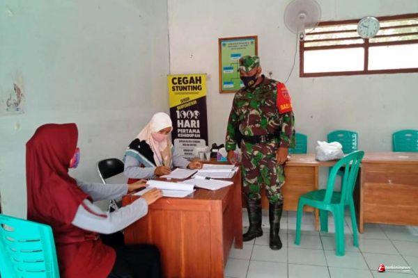 Brebes – Sibuk mempublikasikan kegiatan TMMD Reguler 109 Kodim 0713 Brebes dan juga potensi masyarakat dan SDA Desa Kalinusu Kecamatan Bumiayu, Kabupaten Brebes, Jawa Tengah, Sertu Joko Erwanto, salah satu Babinsa Koramil 08 Bumiayu, yang ditugaskan sebagai anggota tim publikasi TMMD, menyempatkan diri membantu PKD (Puskesmas Desa) Lestari Kalinusu, saat pemberian obat pencegahan kaki gajah/filariasis.