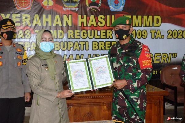Simbolis penyerahan hasil pembangunan adalah dengan penyerahan naskah TMMD yang sebelumnya ditandatangani olehnya dan juga Bupati Brebes selaku kepala daerah.