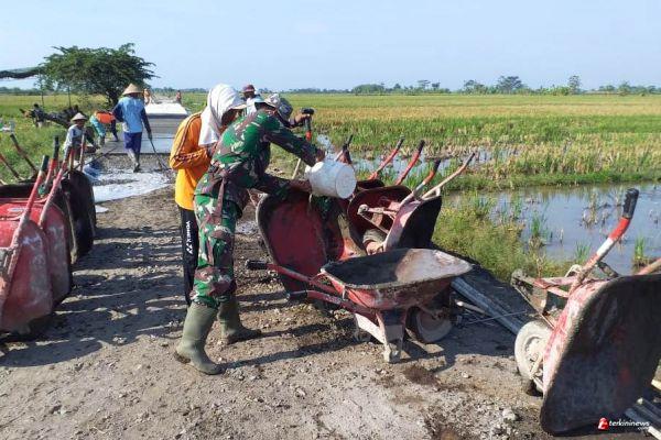 Masuk garis finish pengerjaan pengecoran jalan penghubung dua Dusun melalui TMMD Reguler ke-109 Kodim 0715/Kendal di Desa Sendang Kulon, Kecamatan Kangkung, Kabupaten Kendal, Jawa Tengah.