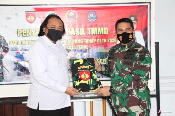 Upacara penutupan TMMD Sengkuyung Tahap III ditandai dengan penandatanganan dan Penyerahan Berita Acara Penyerahan Hasil Pelaksanaan TMMD Sengkuyung Tahap III TA 2020, Rabu (21/10) sore di Peringgitan Rumah Dinas Wali Kota Tegal.