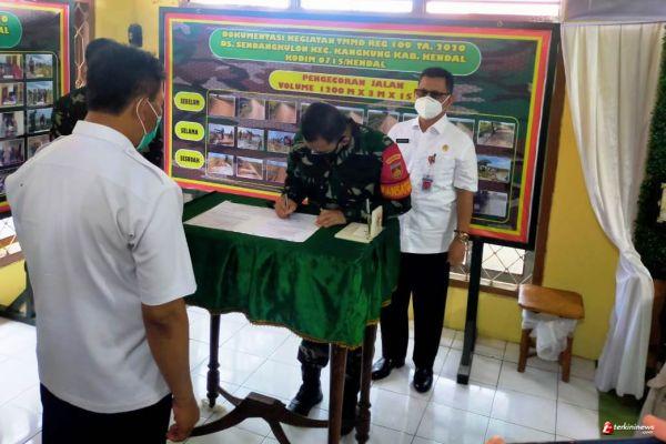 KENDAL- terkininews.com Berakhirnya kegiatan TMMD Reguler ke-109 Kodim 0715/Kendal di Desa Sendang Kulon, Kecamatan Kangkung, Kabupaten Kendal, Jawa Tengah, ditandai dengan penyerahan hasil pekerjaan dari Dandim 0715/Kendal, Letkol Inf Iman Widhiarto S.T kepada pemkab Kendal oleh Bupati Kendal yang diwakili Sekda Moh Toha.