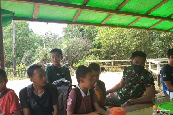 Kali ini Kopda Riyan salah satu anggota Satgas TMMD 109 Sintang, disetiap kesempatan bersama generasi muda setempat selalu menyisipkan pesan bahaya narkoba disela - sela perbincanganya.