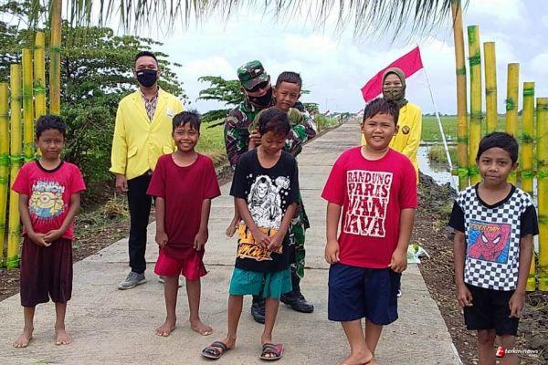 Kapten Inf Sardi yang tergabung dalam Satgas TMMD Kodim 0715/Kendal, yang keseharianya berdinas sebagai Danramil 16/Rowosari disela waktu penutupan TMMD TMMD Reguler ke-109 Kodim 0715/Kendal di Desa Sendang Kulon, Kecamatan Kangkung, Kabupaten Kendal, Jawa Tengah, mengajak ngobrol mahasiswa mahasiswi Unnes dan anak anak Desa Sendang kulon, sekaligus memberikan nasehat,