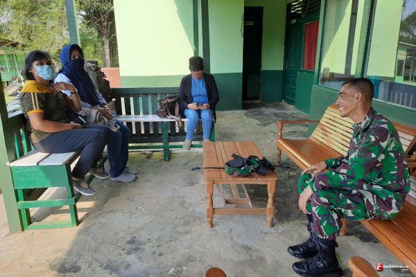 SINTANG - Komandan Satuan Tugas (Dansatgas) TNI Manunggal Membangun Desa (TMMD) Reguler 109 Kodim 1205/ Sintang, Letkol Inf Eko Bintara Saktiawan bersama Tim dari Dinas Perpustakaan dan Kearsipan ( DPK) Kabupaten Sintang, istirahat sejenak di Kantor Koramil Merakai, Sabtu (17/10/2020).